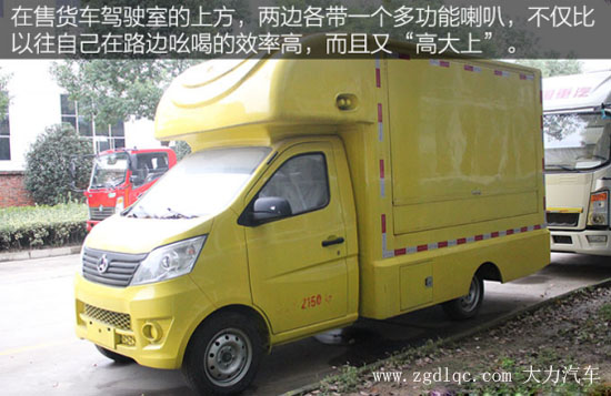 駕駛室上方還配備了多功能的喇叭,在售賣產(chǎn)品的時候我們只需要提前將其錄音,這樣它就可以幫我們做宣傳了。不像以往那樣,需要站在路邊大聲吆喝來引起路人注意。而且喇叭的音量可以調(diào)節(jié),其傳播的范圍要遠(yuǎn)遠(yuǎn)高于人的聲音,不僅提高了效率,而且給人的感覺又特別的“高大上”。