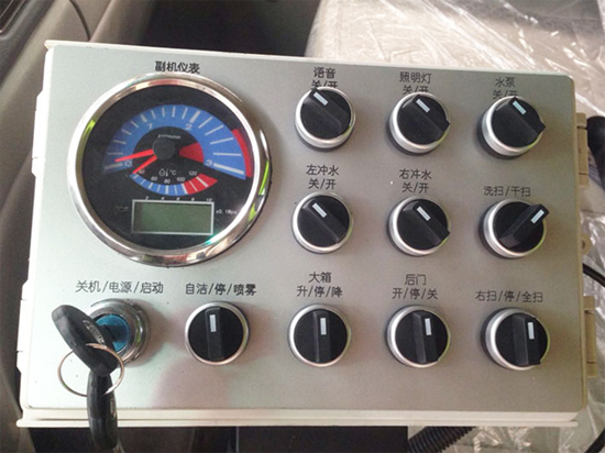 洗掃車(chē)具有路面清洗、路面清掃路緣和路緣石立面洗刷、低壓沖洗、噴霧除塵等多功能。有“全洗掃”、 “左洗掃”、 “右洗掃”、 “全掃”、 多種作業(yè)模式可選擇。選擇“全洗掃”模式清洗廣場(chǎng)和路面,清洗效率高效果好,洗凈率達(dá)95%以上。選擇“左洗掃”或“右洗掃”模式清洗路面和路緣 。需要進(jìn)行路面清掃或路面保潔作業(yè)時(shí),可選擇掃路模式。需要噴霧除塵時(shí),可開(kāi)啟噴霧裝置,進(jìn)行噴霧除塵作業(yè)?梢韵駷⑺(chē)一樣對(duì)路面進(jìn)行低壓沖洗作業(yè)。