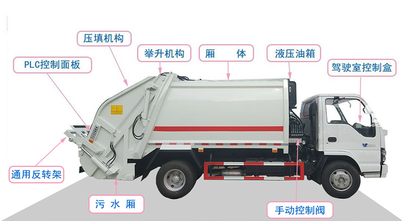 3,新款結(jié)構(gòu)填充器加大方便操作,手電一體操作模式,雙邊控制盒,帶駕駛室操作,帶應(yīng)急手動(dòng)控制,標(biāo)配垃圾翻轉(zhuǎn)斗或掛桶翻轉(zhuǎn)板,8方及以上車型帶雙污水箱。