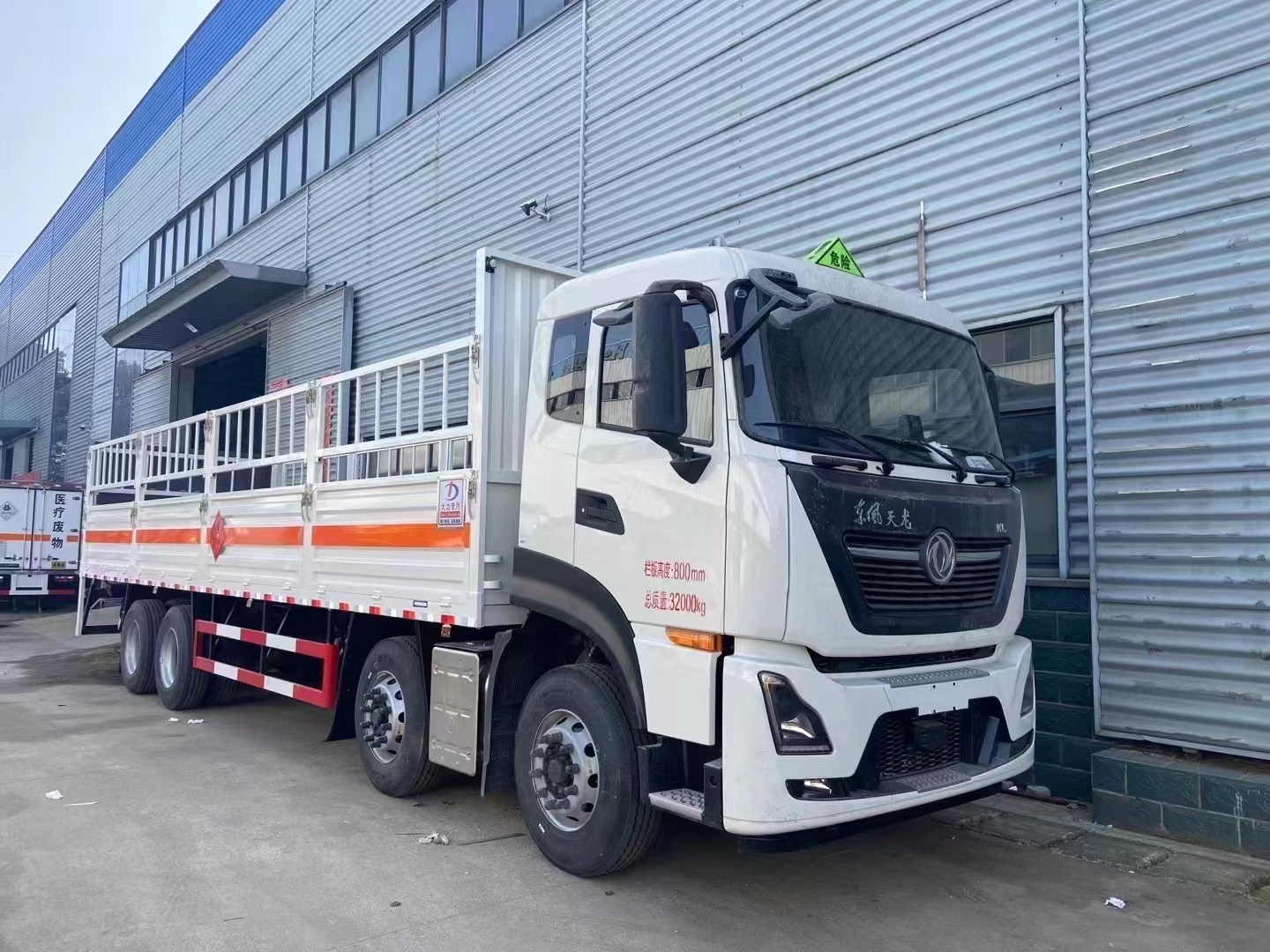 東風天龍前四后八氣瓶車,9.6米貨廂,DDI發(fā)動機,350馬力,2噸液壓尾板。
