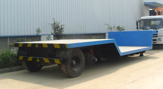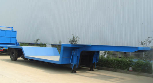 平板半掛車 載貨部位的地板為平板結(jié)構(gòu)且無欄板的半掛車。