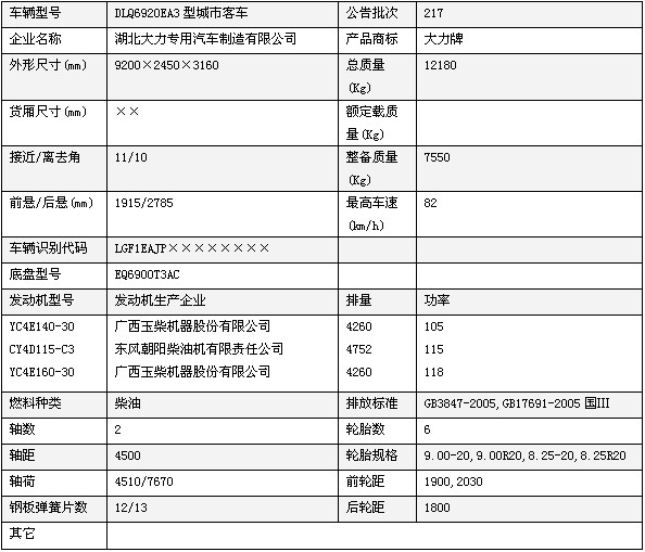 大力牌客車技術(shù)參數(shù)說明