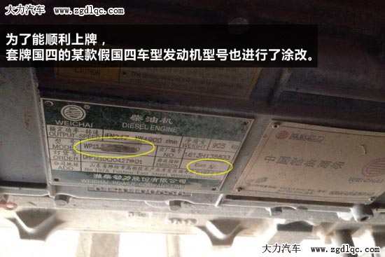 近日,有浙江省的經(jīng)銷商抱怨稱:當他們正在忙著推廣國四產(chǎn)品的時候,卻發(fā)現(xiàn)周圍都在銷售用國三車型套牌當國四車型進行銷售。為了能夠順利上牌,非國四的發(fā)動機銘牌也都進行了涂改。