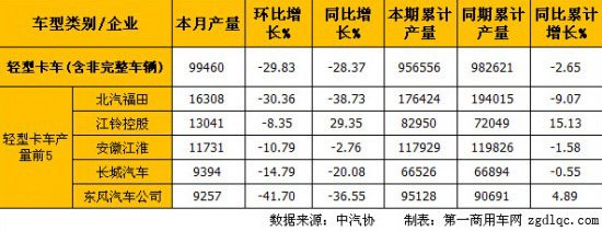 一、輕型卡車產(chǎn)銷情況: