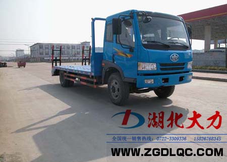 湖北大力汽車公司生產(chǎn)的平板運輸車是多功能轉(zhuǎn)場運輸車,適用于公路路面機械、攤鋪機、鐵銑機、壓路機以及工程履帶設備等各種公路、市政、建筑大型施工機械設備的轉(zhuǎn)場運輸。它具有靈活方便、自主上下(各履帶式工程設備可自行上下平臺,無需其他任何起吊設備及輔助工具)、升降自如(跳板采用內(nèi)隙自調(diào)液壓增力式裝置,可自行升降)的特點。 湖北大力已全面通過ISO9001-2000國際質(zhì)量體系認證,產(chǎn)品全面通過3C認證,是國內(nèi)知名品牌,湖北省著名商標。