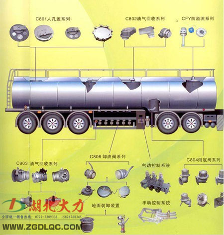 這個圖片可以很方便的看出來,油罐車可以分倉的,每一個倉都需要一鋁合金罐口(也稱為人孔),可以帶防溢漏探頭,海底閥,卸油接頭,海底閥,又稱緊急切斷閥,安裝于罐體底部,進行下裝加油時使用,操作簡便、節(jié)時、安全環(huán)保。